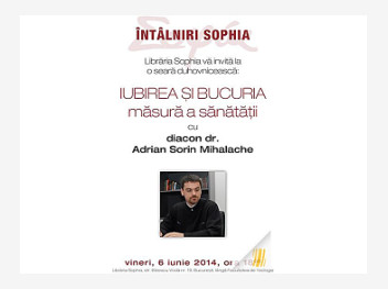 Vineri, 6 iunie, de la ora 18.00, vă invităm să ascultați în direct întâlnirea de la Librăria Sophia din București cu diaconul Sorin Mihalache. Tema acestei seri duhovnicești este Iubirea și bucuria, măsură a sănătății.