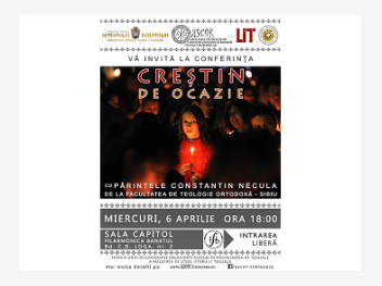 Conferința „Creștin de ocazie" susținută de părintele Constantin Necula de la Facultatea de Teologie Ortodoxă din Sibiu miercuri, 6 aprilie, de la ora 18.00, în Sala Capitol a Filarmonicii Banatul din Timișoara, va fi transmisă în direct pe ortodoxradio.ro.